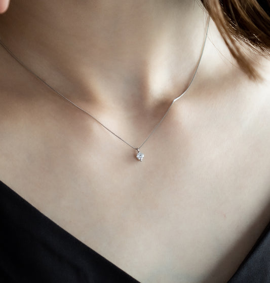 0.18カラットの繊細さは、日常使いに最適。あなたの優雅さをさりげなく際立てます。まるで肌に溶け込むように、どんなシーンでも美しさを。