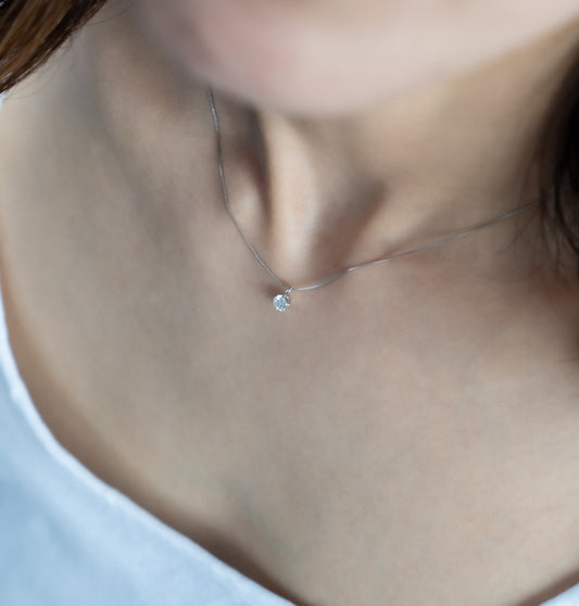 0.18カラットの繊細さは、日常使いに最適。あなたの優雅さをさりげなく際立てます。まるで肌に溶け込むように、どんなシーンでも美しさを。